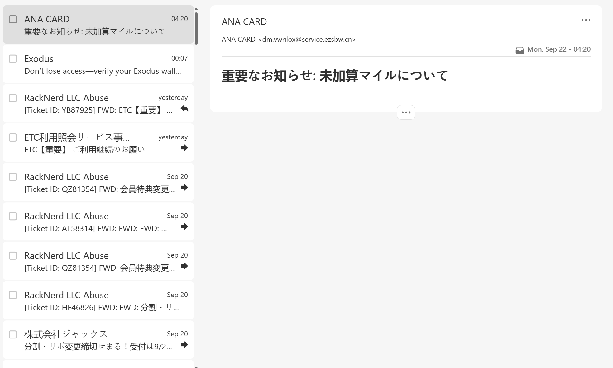 It is suggestive of going to Japan instead of China given the domain name which is chinese versus the actual content which is Japanese. In other words because of what I am outlining, China might be deemed to be tempting and the US wouldn't want that so they send an email with reference to what is one of their colonies. It's not Japan because Japan is not really the sort of country to engage in such behaviour being as it is dependent upon the US.